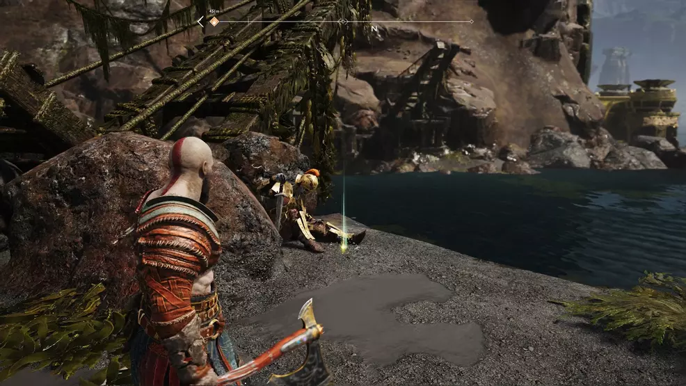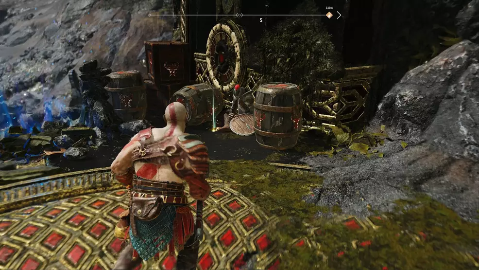 The outset Spoils of State of war Artifact is found subsequently you free the boat and begin paddling through the lake toward the ringed temple. Stick to the right to accomplish a small beach with a rotating lock below a span made of branches. Use the mechanism and quickly run through the gate beyond the gap. Look to the right of this room to come across a similar setup, this time yous will demand to spin the lock and and then throw the Leviathan axe to clear the door. Follow the path around to the correct to cross the span you walked below not a moment agone. Across this bridge is a dead body and at its feet is the first Spoils of War.
