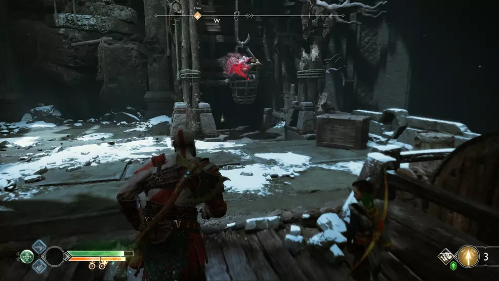 The next Bottoms Up Artifact tin be plant in a tunnel shortly after Brok's shop in The Mountain. This tunnel tasks Kratos with moving a large platform down a track. Moving this reveals a spiky wall that can be pushed opening using the Leviathan axe and behind it is the Bottoms Up Artifact.