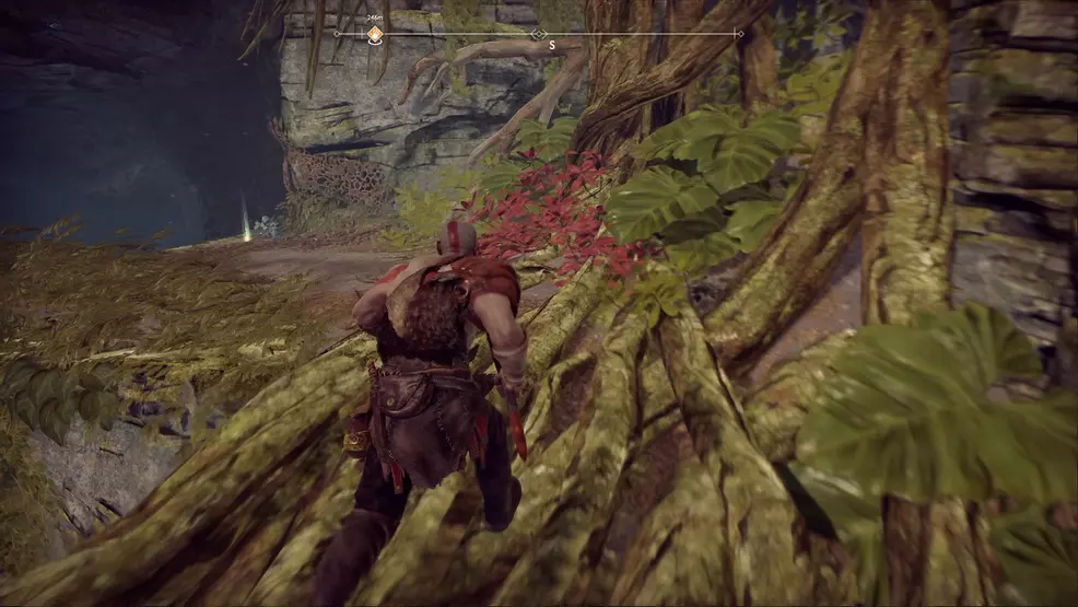 This Bottoms Upwards Antiquity can only be collected after completing a later mission as it is locked behind some World Tree Sap inside The Mount. You tin can return here as part of the main quest after the mission, The Blackness Rune. Use Atreus' arrow ability to clear the sap, the Bottoms Up Antiquity is on the ground inside.
