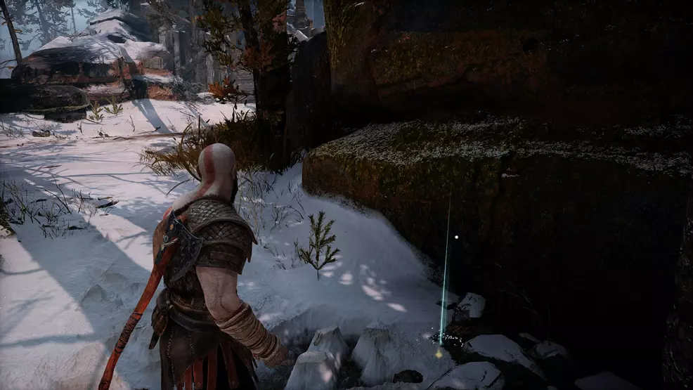 Another Faces of Magic Antiquity is located shortly later Kratos and Atreus find their boar and endeavour to pierce its hibernate with an arrow. Driblet down into the burned downwards village and head left, a human being will be pinned to the tree, and across from him is a hut, behind this hut is the Faces of Magic.